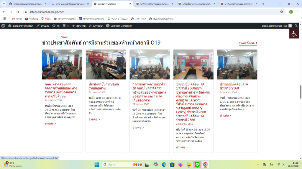 ผลการปฏิบัติ (19) เเสดงไว้บนหน้าหลักของเว็บไซต์