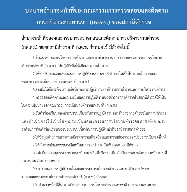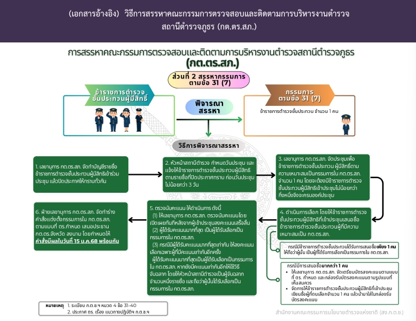 เอกสารอ้างอิง : วิธีการสรรหาคณะกรรมการตรวจสอบเเละติดตามการ บริหารงานสถานีตำรวจภูธร (กต.ตร.สภ.)